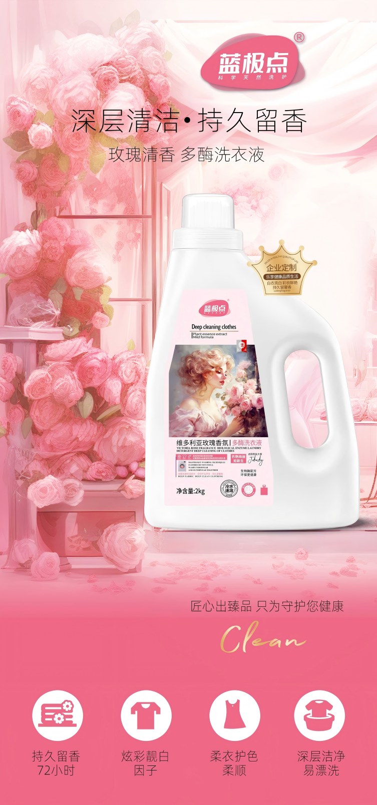 【包邮】1瓶 2公斤/瓶 蓝极点 维多利亚玫瑰香氛|多酶洗衣液【付款后,不退款,不换货。介意勿拍】